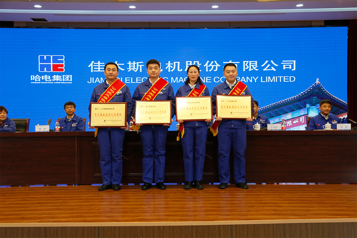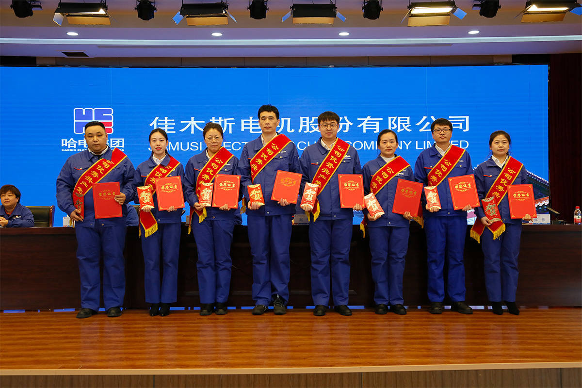佳電股份中層領(lǐng)導(dǎo)人員、中層助理,黨建工作部、紀委辦公室、巡察辦公室全體人員,各直屬黨組織委員、各直屬工會主席、各直屬團組織書記、黨外人士代表以及受到表彰的先進集體代表和先進個人等200余人參加會議。蘇州佳電永磁電機科技有限公司、先進電機技術(shù)有限公司以視頻會議形式參加會議。