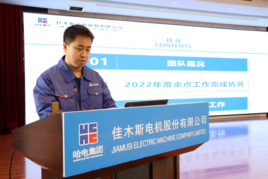 3月11日,哈爾濱電氣集團(tuán)佳木斯電機(jī)股份有限公司(以下簡稱“佳電股份”)隆重召開第七屆科技創(chuàng)新大會,對佳電股份2022年度在科技工作上做出突出貢獻(xiàn)的集體和個人進(jìn)行了表彰獎勵。獲獎代表對重大科技項目做了情況介紹與經(jīng)驗分享。佳電股份黨委副書記、副董事長、總經(jīng)理姜清海出席會議并講話。佳電股份副總經(jīng)理潘波做年度科技工作報告。佳電股份黨委副書記、工會主席劉漢成主持會議。佳電股份領(lǐng)導(dǎo)、有關(guān)單位中層領(lǐng)導(dǎo)人員及技術(shù)戰(zhàn)線全體科技人員參加會議。