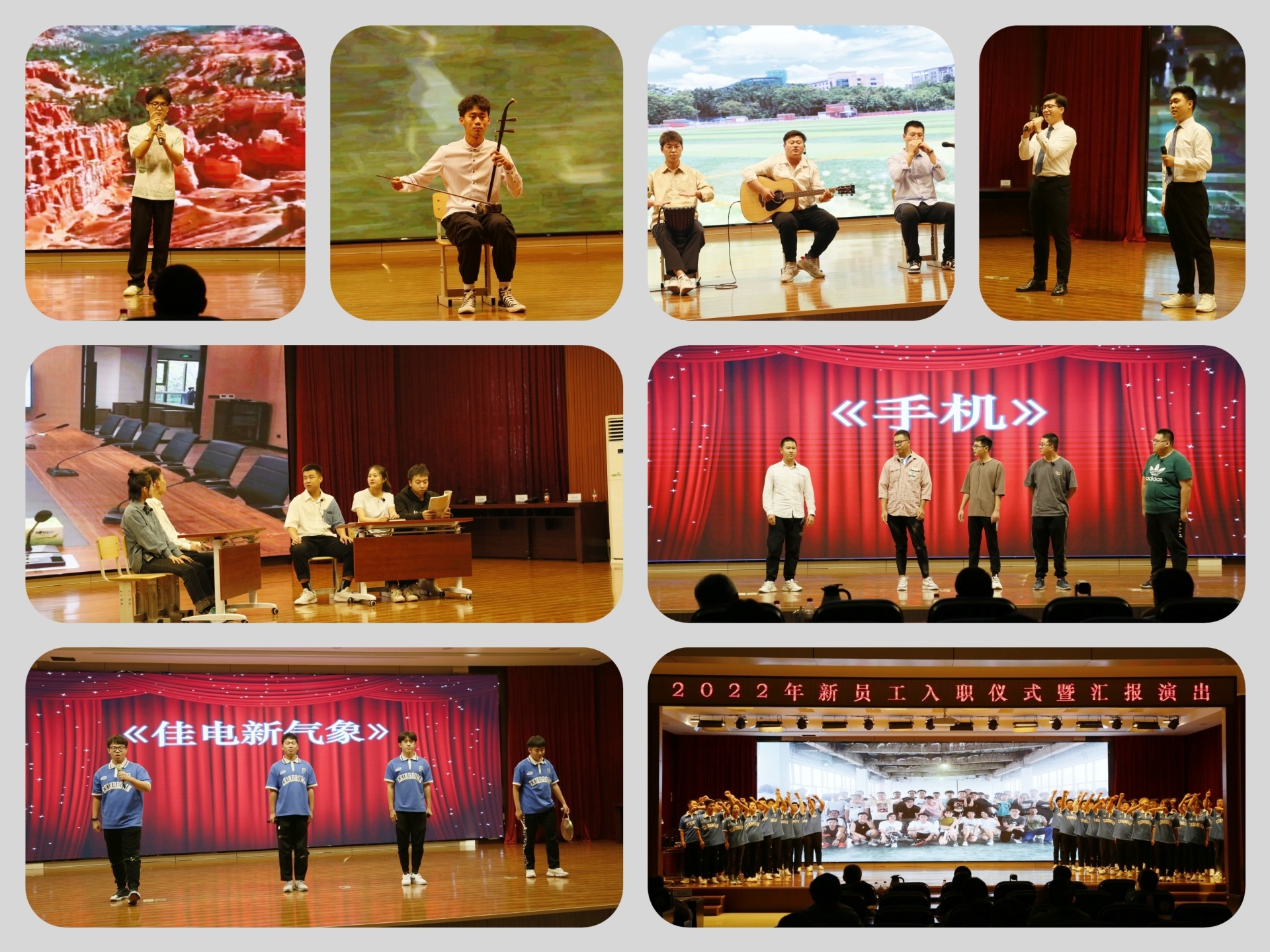 入職儀式結(jié)束后,新員工奉獻(xiàn)了一場(chǎng)自編自導(dǎo)的精彩演出,有情深意切的歌曲串燒,有激情洋溢的樂(lè)器演奏,有幽默風(fēng)趣的相聲曲藝,還有巧妙絕倫的悠悠球表演。最后大家以一首《相親相愛(ài)》表達(dá)了對(duì)新環(huán)境和新同事的熱愛(ài)。
