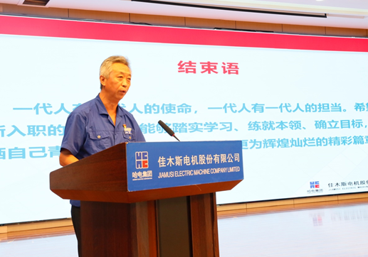 劉清勇講述了公司的發(fā)展歷程、未來戰(zhàn)略方向及對(duì)青年人才的殷切希望。他指出,公司作為上市公司,特種電機(jī)的龍頭企業(yè),電機(jī)行業(yè)的領(lǐng)航者,公司的平臺(tái)是足夠廣闊的,會(huì)給每個(gè)有追求的人搭建實(shí)現(xiàn)人生價(jià)值的舞臺(tái)。劉清勇寄語新入職大學(xué)生,“一代人有一代人的使命,一代人有一代人的擔(dān)當(dāng)。希望新入職的大學(xué)生,能夠踏實(shí)學(xué)習(xí)、練就本領(lǐng)、確立目標(biāo),揮灑自己青春的汗水,去書寫佳電更為輝煌燦爛的精彩篇章”。