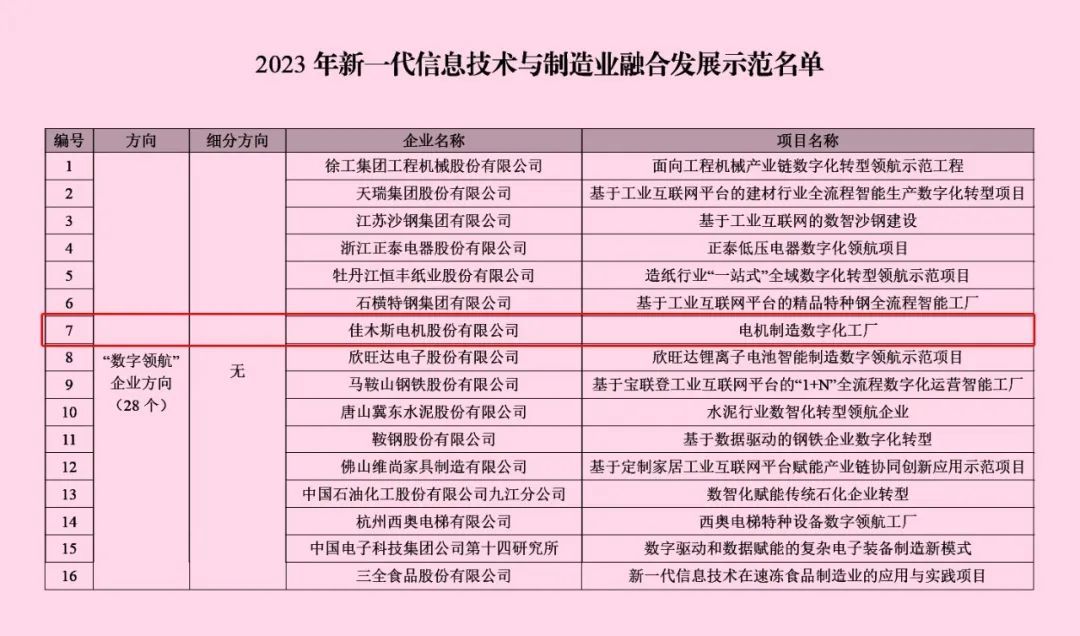 近日,工業(yè)和信息化部辦公廳公布了2023年新一代信息技術(shù)與制造業(yè)融合發(fā)展示范名單,在“數(shù)字領(lǐng)航”企業(yè)方向,哈電集團(tuán)佳電股份申報(bào)的“電機(jī)制造數(shù)字化工廠”項(xiàng)目成功入選,這是哈電集團(tuán)佳電股份在數(shù)字化轉(zhuǎn)型和科技創(chuàng)新方面獲得的又一項(xiàng)重大殊榮,...